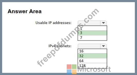 What is the maximum number of IPv4 subnets you can create, and how many usable IP addresses will be available per subnet? To answer, select the appropriate options in the answer area.