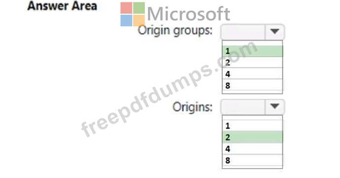 What is the minimum number of origin groups and origins that you should configure? To answer, select the appropriate options in the answer area.