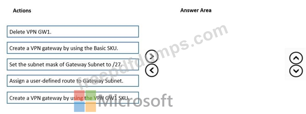 Which three actions should you perform in sequence for Vnet1? To answer, move the appropriate actions from the list of actions to the answer area and arrange them in the correct order.