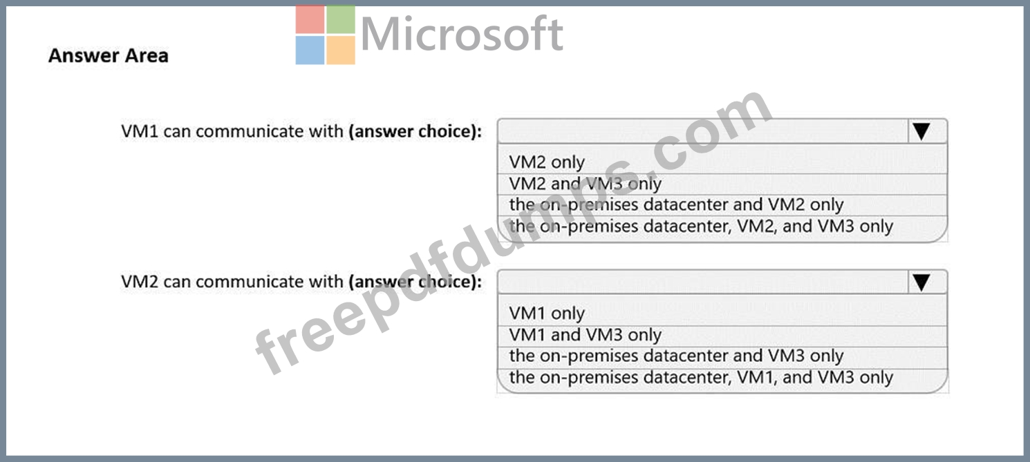 - Traffic between Vnet2 and Vnet3 must be routed through Vnet1.