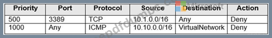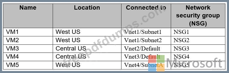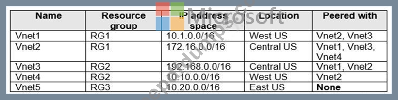Contoso has an Azure Active Directory (Azure AD) tenant named contoso.com. The Azure subscription contains the virtual networks shown in the following table.