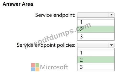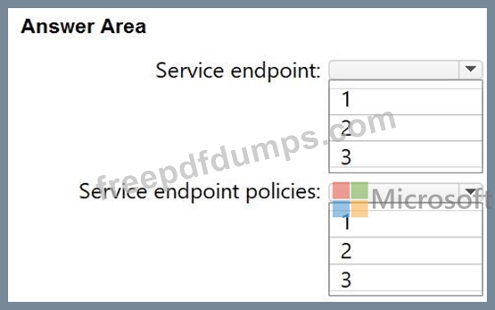 What is the minimum number of service endpoints and service endpoint policies you should create? To answer, select the appropriate options in the answer area.