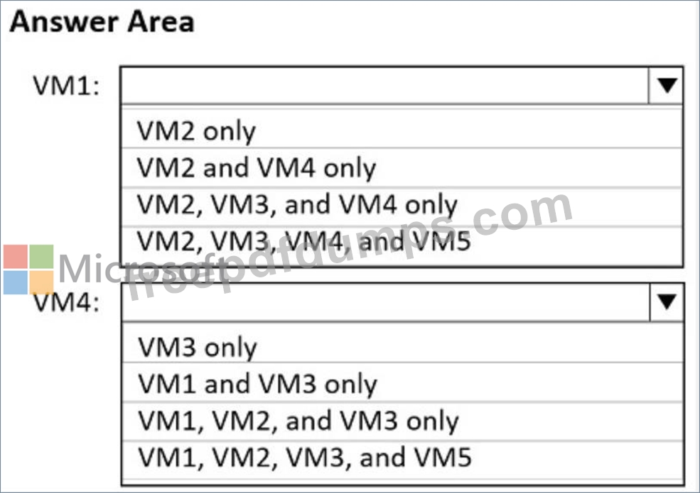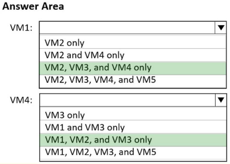 Which virtual machines can VM1 and VM4 ping successfully before NSG10 and NSG11 are created? To answer, select the appropriate options in the answer area.