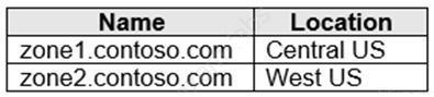 The Azure subscription contains the Azure private DNS zones shown in the following table.