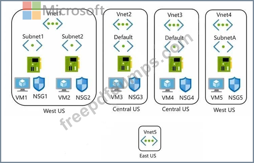 - The virtual machines in Vnet4 and Vnet5 must be able to communicate