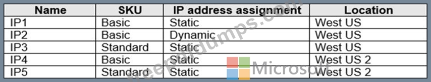 You have an Azure subscription that contains the public IPv4 addresses shown in the following table.