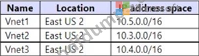 You have an Azure subscription that contains the virtual networks shown in the following table.