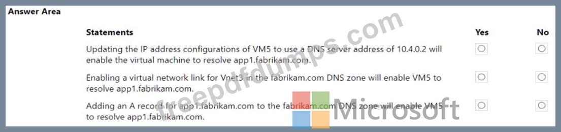 VM5 fails to resolve the IP address for app1.fabrikam.com.