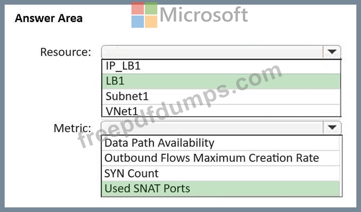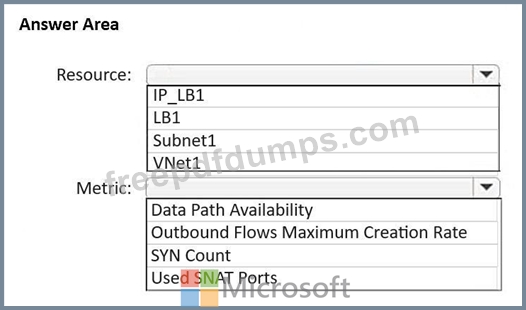 Which resource and metric should you review? To answer, select the appropriate options in the answer area.