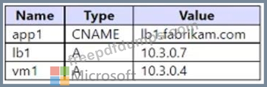 You have an Azure Private DNS zone named fabrikam.com that contains the records shown in the following table.