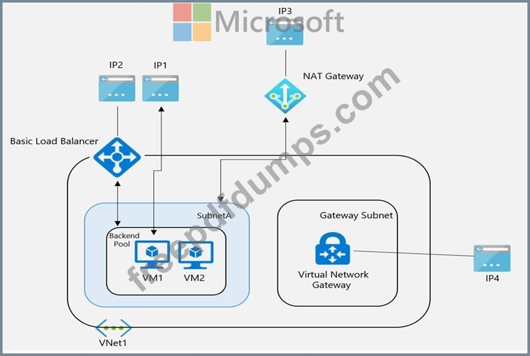 VNet1 has a virtual network gateway that has a public IP address named IP4.