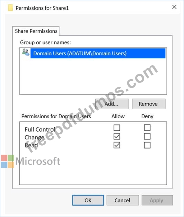 The share permissions for Share1 are configured as shown in the Share Permissions exhibit.