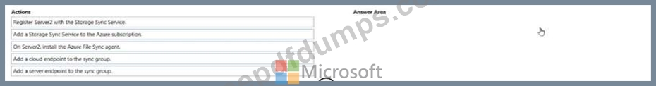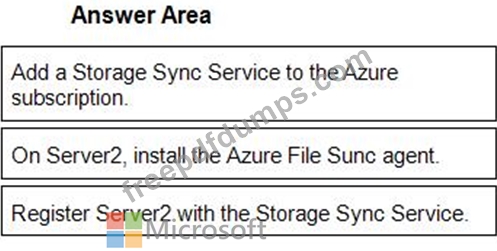 You have an Azure Storage account named storage1 that contains a file share named share'. Server1 syncs with share1 by using Azure File Sync You need to configure Server2 to sync with share1.