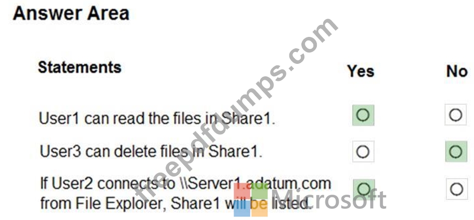 The share permissions for Share1 are shown in the following table.