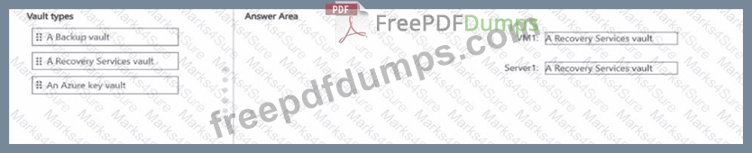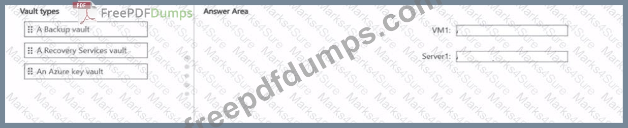 Which type of vault should you configure for each resource? To answer, drag the appropriate vault types to the correct resources. Each vault type may be used once, more than once, or not at all. You may need to drag the split bar between panes or scroll to view content.