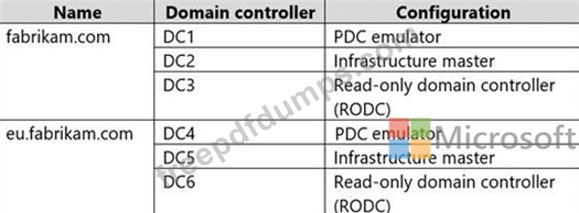 Your network contains an Active Directory Domain Services (AD DS) forest. The forest contains the domains shown in the following table.