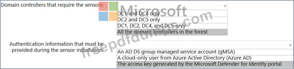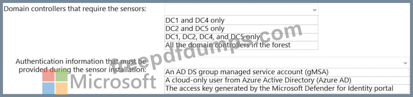 You need to install the sensors on the minimum number of domain controllers. The solution must ensure that Defender for Identity will detect all the security risks in both the domains.