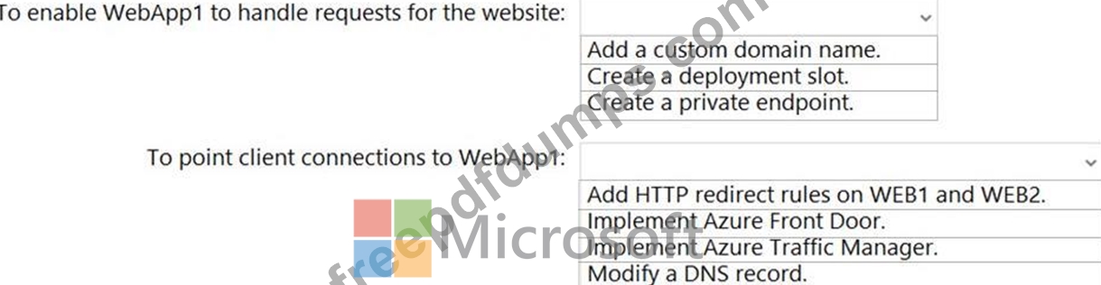How should you configure WebApp1? To answer, select the appropriate options in the answer area.