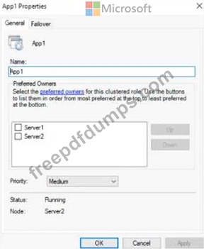 You have a failover cluster named Cluster1 that hosts an application named App1.