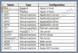 The office in Chicago contains on-premises servers that run Windows Server 2016 as shown in the following table.