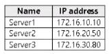 Your network contains an Active Directory Domain Services (AD DS) domain. The domain contains servers that run Windows Server as shown in the following table.