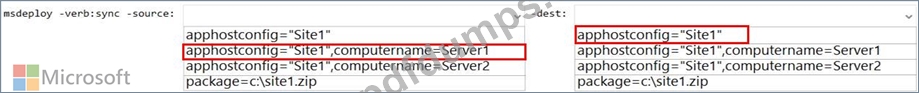 Both servers are configured to enable website deployment by using the Web Deployment Tool. Server1 hosts a website named Site1 that has Web Deploy Publishing configured.