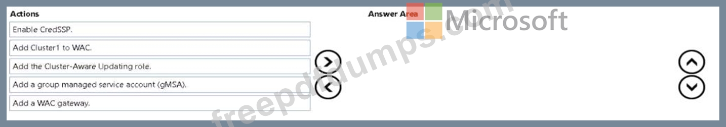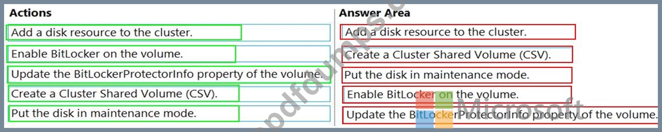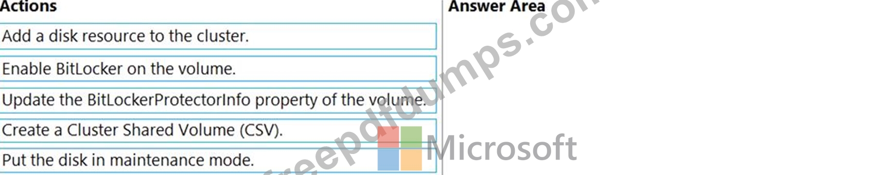 In which order should you perform the actions? To answer, move all actions from the list of actions to the answer area and arrange them in the correct order.