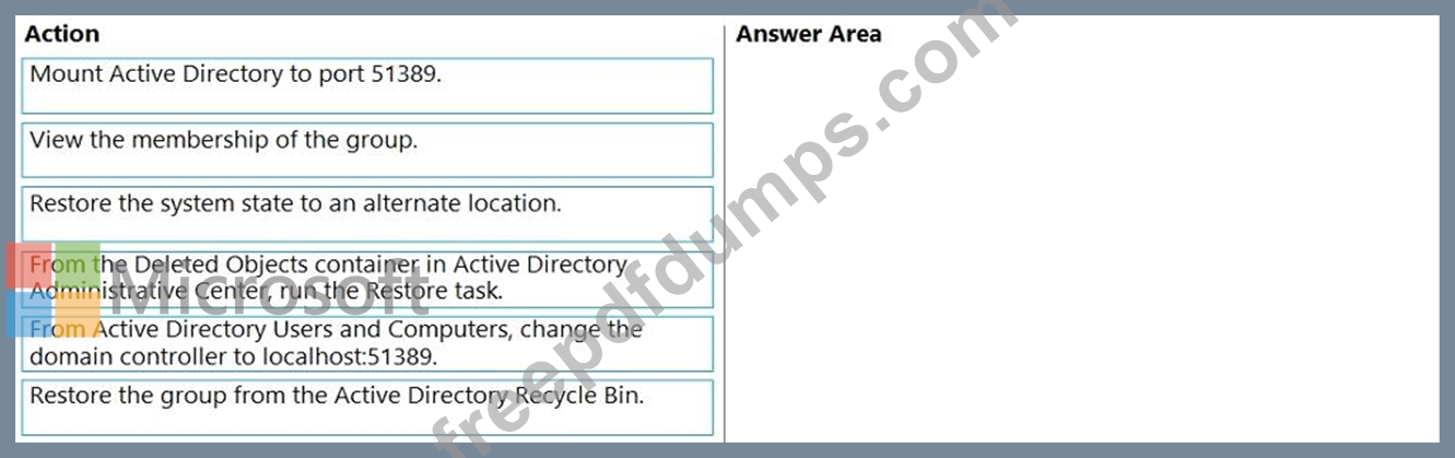Your network contains an Active Directory Domain Services (AD DS) domain that has the Active Directory Recycle Bin enabled. All domain controllers are backed up daily.