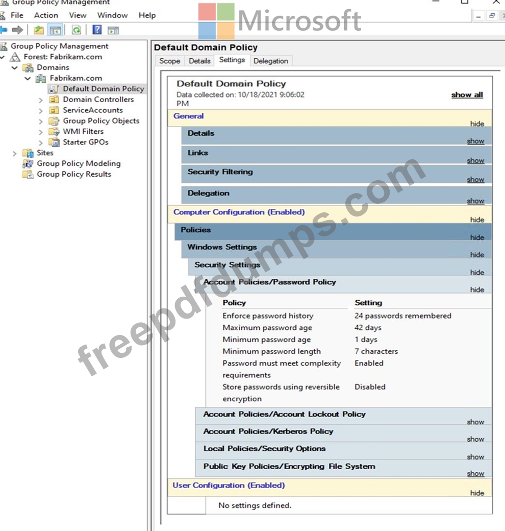 The Default Domain Policy Group Policy Object (GPO) is shown in the GPO exhibit. (Click the GPO tab.)