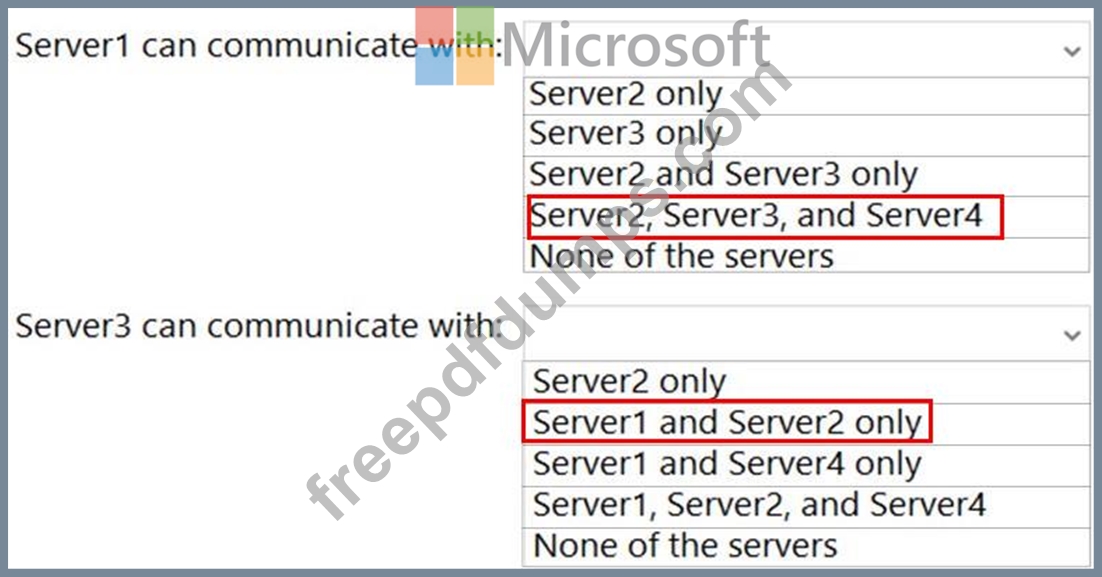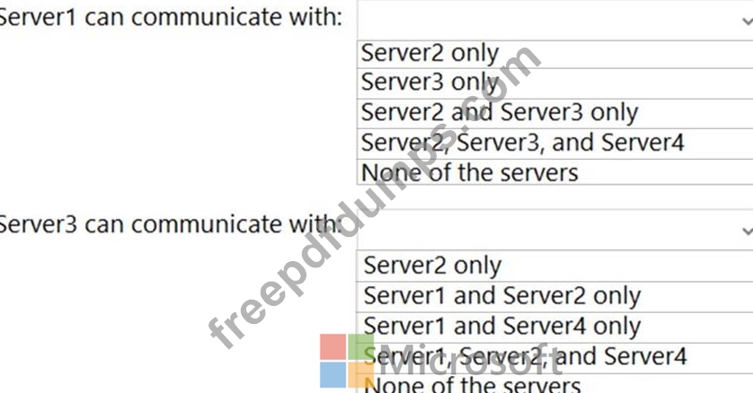 With which servers can Server1 and Server3 communicate? To answer, select the appropriate options in the answer area.