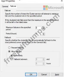 The Failover tab in App1 Properties is shown in the Failover exhibit. (Click the Failover tab.)