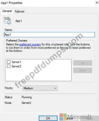 You have a failover cluster named Cluster1 that hosts an application named App1.
