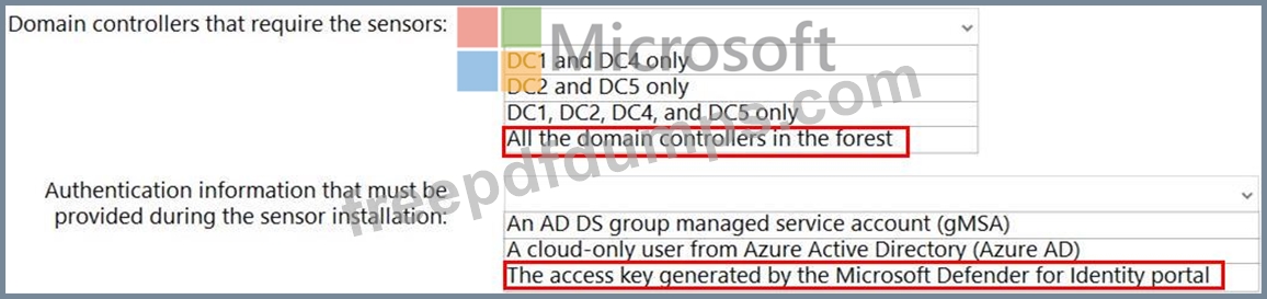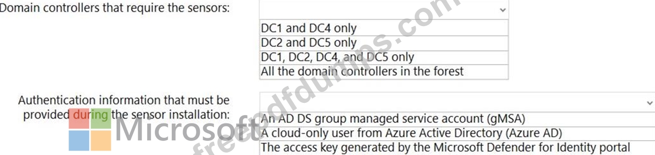 You need to install the sensors on the minimum number of domain controllers. The solution must ensure that Defender for Identity will detect all the security risks in both the domains.
