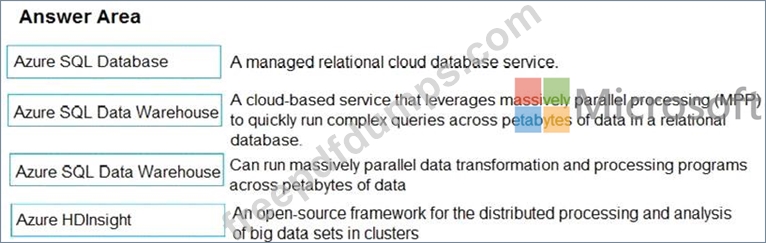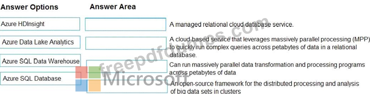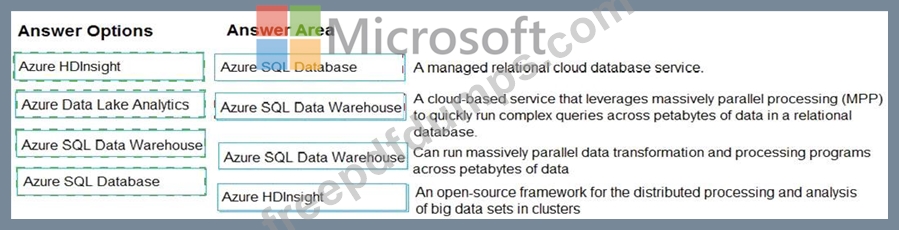 Instructions: To answer, drag the appropriate Azure service from the column on the left to its description on the right. Each service may be used once, more than once, or not at all.
