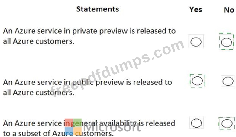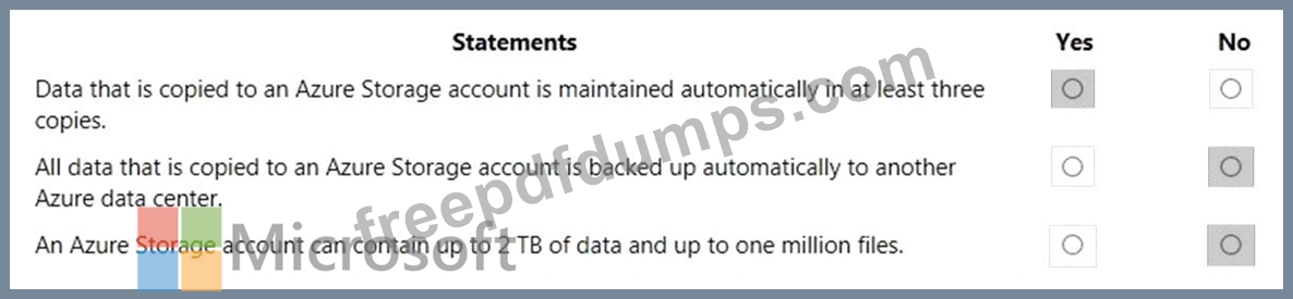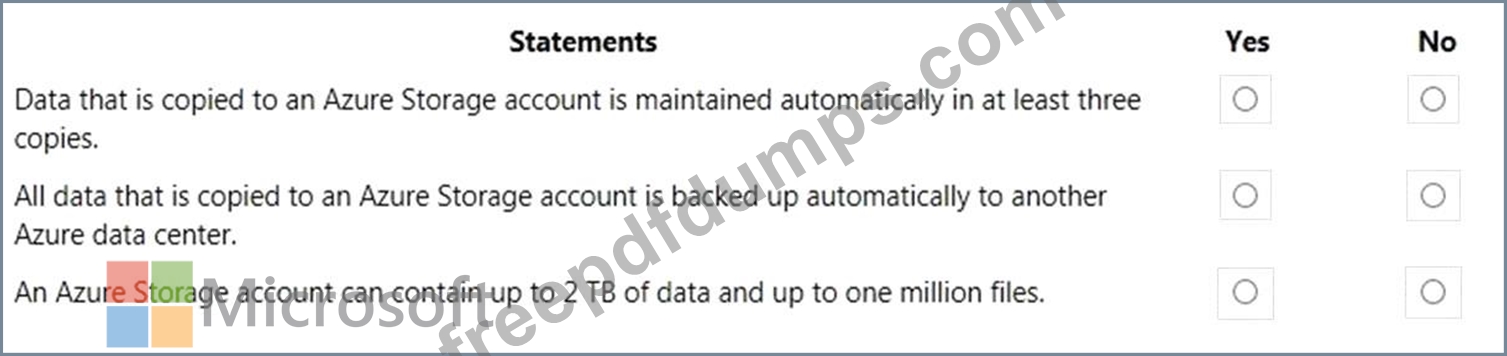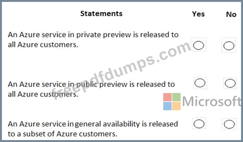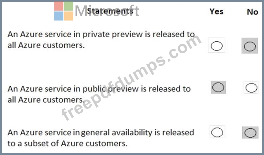 For each of the following statements, select Yes if the statement is true. Otherwise, select No.