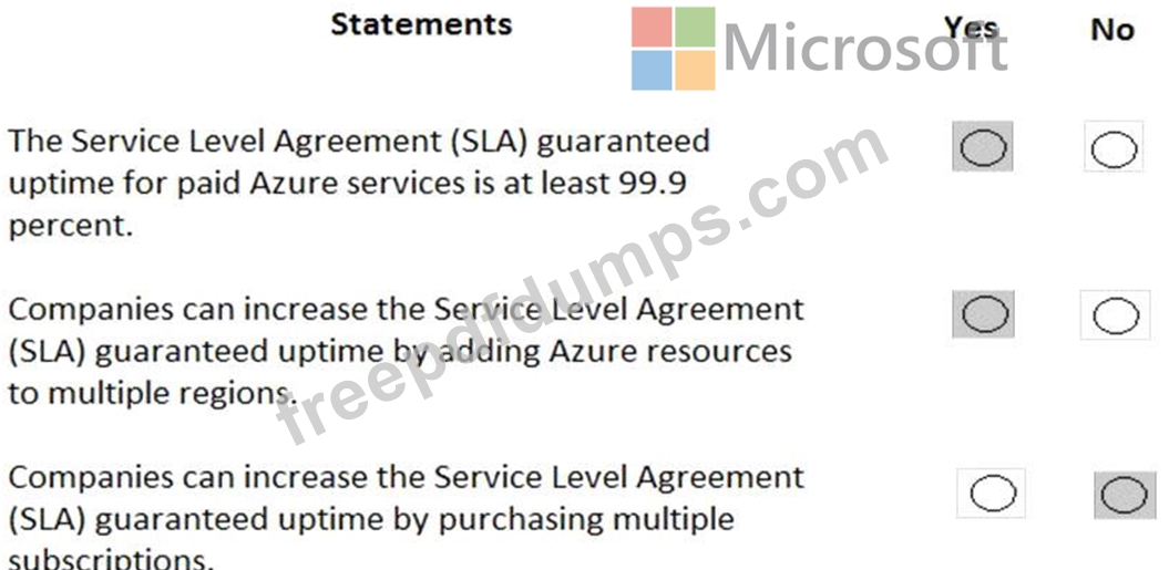 For each of the following statements, select Yes if the statement is true. Otherwise, select No.