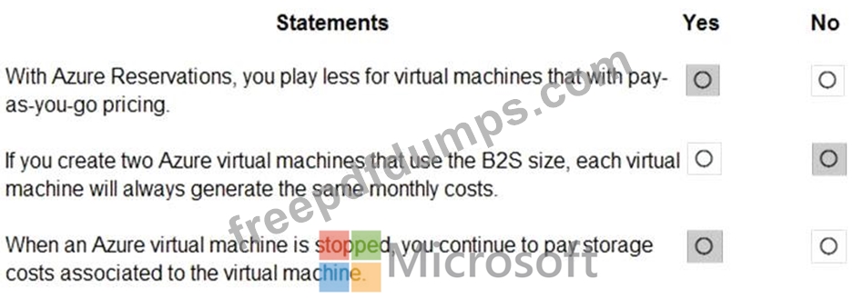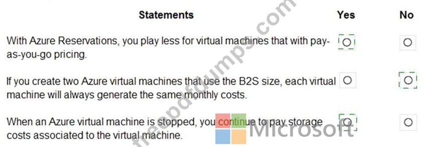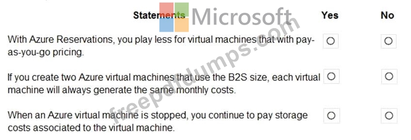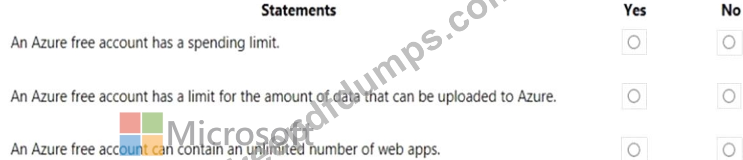 For each of the following statements, select Yes if the statement is true. Otherwise, select No.