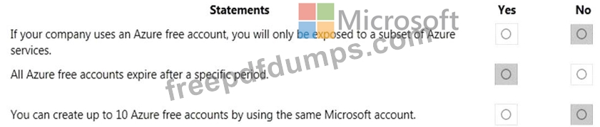 For each of the following statements, select Yes if the statement is true. Otherwise, select No. NOTE: Each correct selection is worth one point.