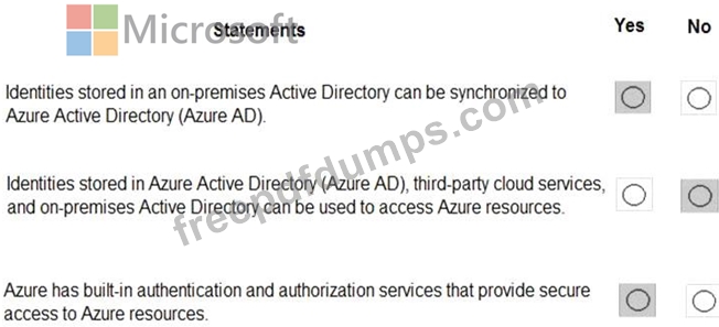 For each of the following statements, select Yes if the statement is true. Otherwise, select No.