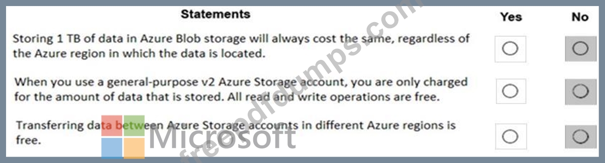 For each of the following statements, select Yes if the statement is true. Otherwise, select No.