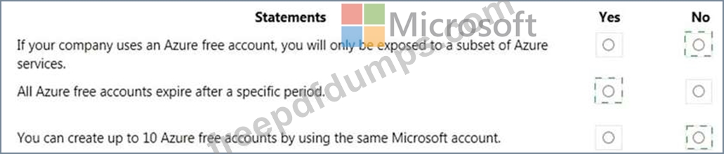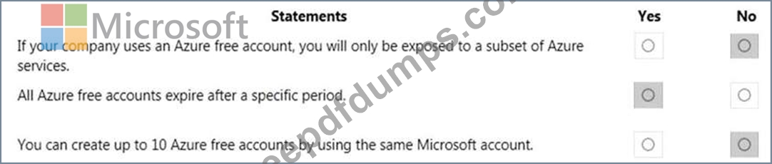 For each of the following statements, select Yes if the statement is true. Otherwise, select No. NOTE: