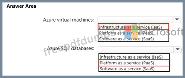 Which cloud deployment solution is used for Azure virtual machines and Azure SQL databases? To answer, select the appropriate options in the answer area.