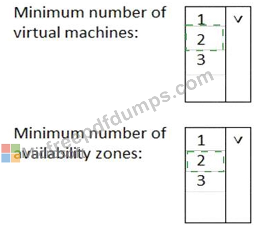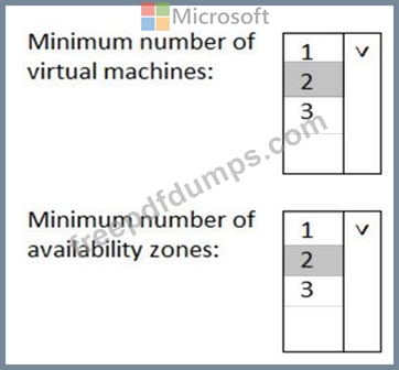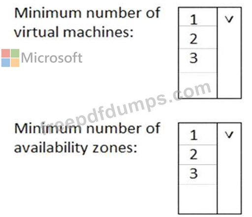 What is the minimum number of virtual machines and the minimum number of availability zones you should recommend for the deployment? To answer, select the appropriate options in the answer area.