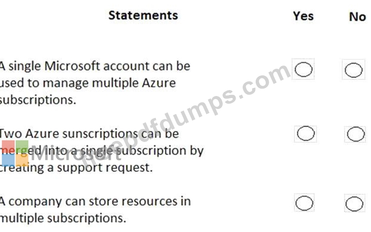 For each of the following statements, select Yes if the statement is true. Otherwise, select No.