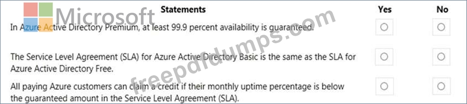 For each of the following statements, select Yes if the statement is true. Otherwise, select No.
