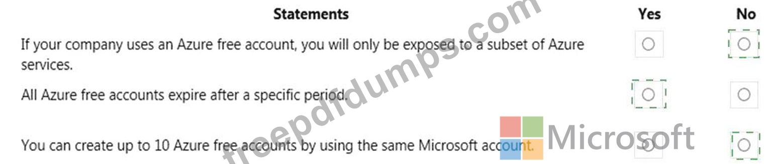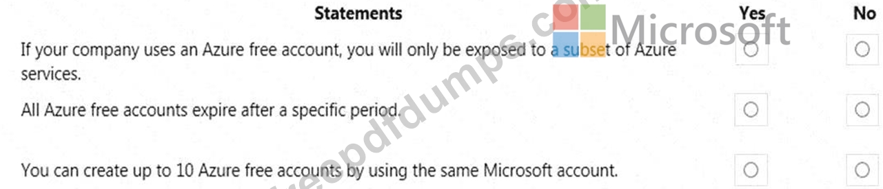 For each of the following statements, select Yes if the statement is true. Otherwise, select No.