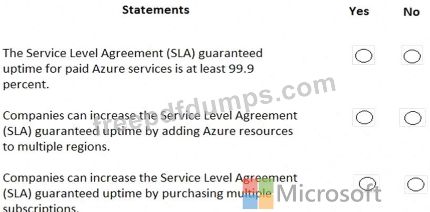 For each of the following statements, select Yes if the statement is true. Otherwise, select No.