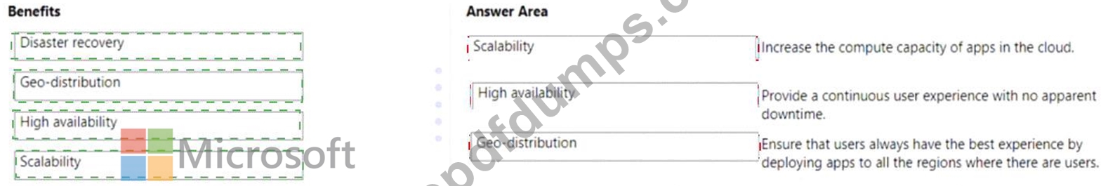 To answer, drag the appropriate benefit from the column on the left to its description on the right. Each benefit may be used once, more than once, or not at all.