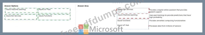 Instructions: To answer, drag the appropriate Azure service from the column on the left to its description on the right. Each service may be used once, more than once, or not at all NOTE: Each correct match is worth one point.