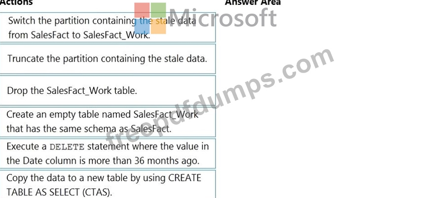 You have a table named SalesFact in an enterprise data warehouse in Azure Synapse Analytics. SalesFact contains sales data from the past 36 months and has the following characteristics: